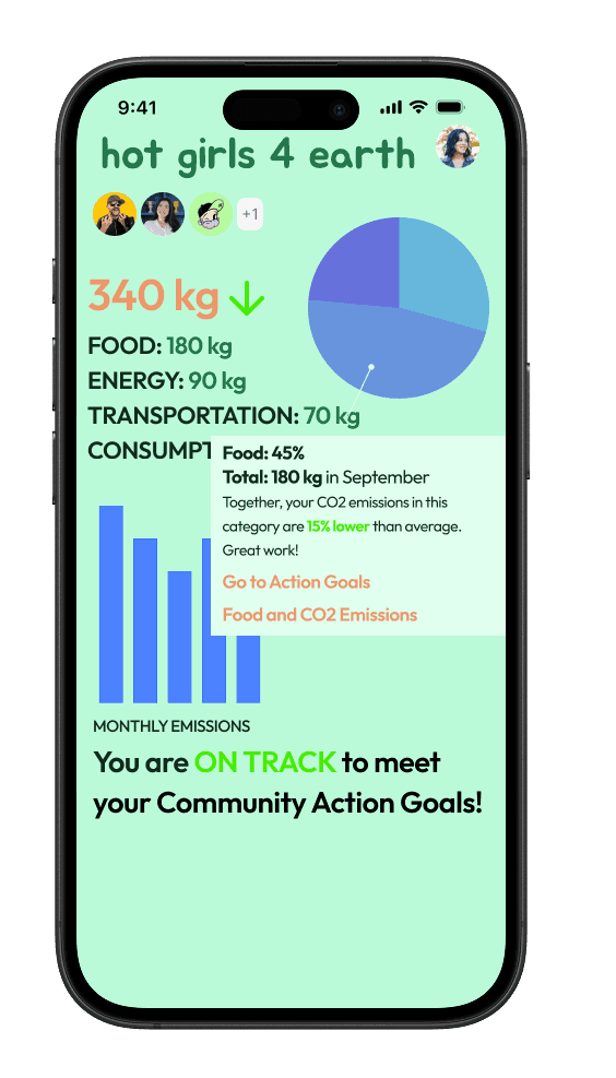 My main focus (gamification, data visualization) was achieving the app's goal: making climate action feel rewarding, not overwhelming.