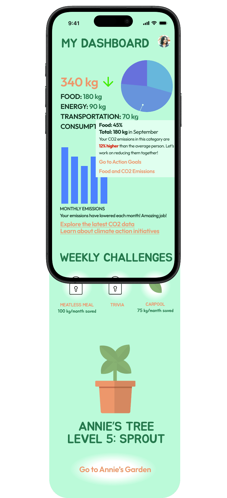 ➢ Additional features, such as tips to motivate the user to achieve their climate goals.